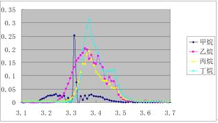 從上表可以看出,煤氣主要成分中CO、O2與背景氣N2的熱導(dǎo)系數(shù)相當(dāng),對H2的測量結(jié)果影響不大,但是CO2、CH4對H2測量影響明顯。通過理論分析及實驗表明,如果氣體成分中含有CO2,會使H2的測量讀數(shù)偏低;如果氣體成分中含有CH4,會使H2的測量讀數(shù)偏高。因此為了得到準(zhǔn)確的H2含量,應(yīng)對H2濃度進行CO2、CH4的濃度校正。此外由于熱導(dǎo)傳感器的基本原理是通過對氣體流動帶走的熱量進行換算,如果采用直接流通式的熱導(dǎo)檢測池,很難控制氣流,流量大小直接影響H2的讀數(shù),為了得到*的煤氣熱值,煤氣分析儀還必須實現(xiàn)CH4、CnHm無干擾測試。大多數(shù)紅外分析儀僅以CH4為測試對象,折合成碳氫化合物總量計算熱值。煤氣成份中,特別是焦?fàn)t煤氣,除甲烷外,還含有其他碳氫化合物等成分。根據(jù)紅外吸收原理,如圖1,乙烷等碳氫化合物在甲烷的特征波長3.3um左右有明顯吸收干擾。當(dāng)煤氣中其他碳氫化合物含量較大時,CH4的測試值會明顯偏大,導(dǎo)致熱值測試不準(zhǔn),其熱值測試值也無法保證精度。