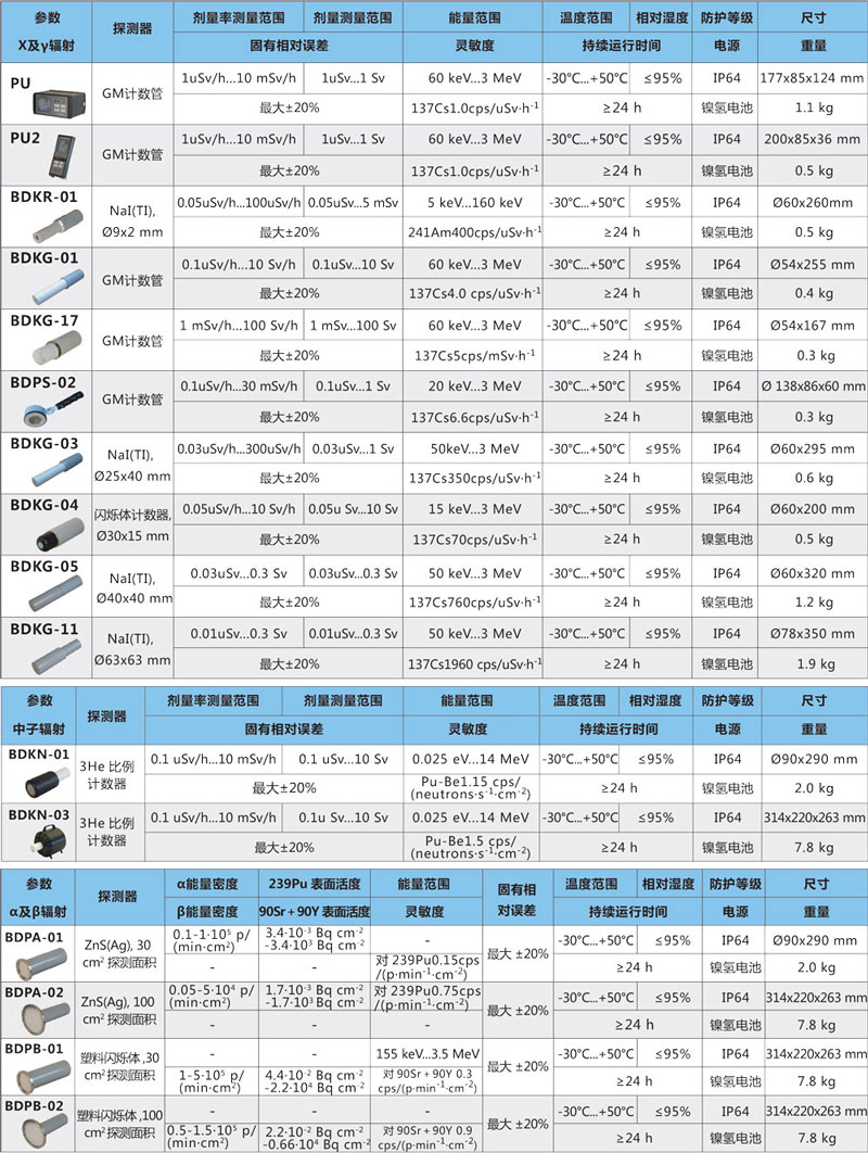 ?可測量多種射線α、β、γ、中子 和X 射線,并對這些射線進行搜索