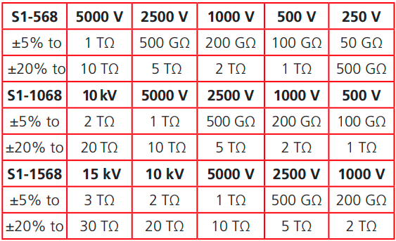 S1-1568 10 kΩ 至 35 TΩ |